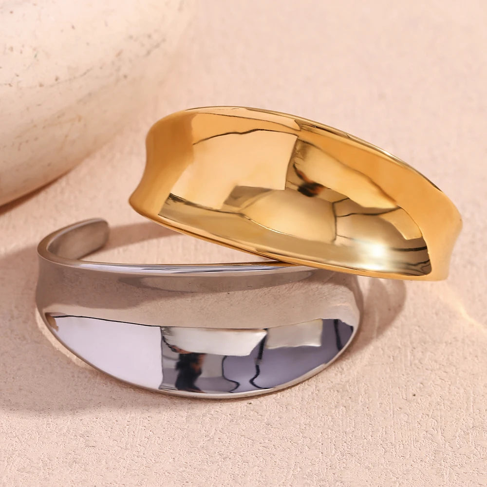 Make your wrist a work of art with Aisha , a bracelet with broad, sculptural lines. Its smooth, mirror-like surface powerfully captures the light, bringing charisma and presence to your look.