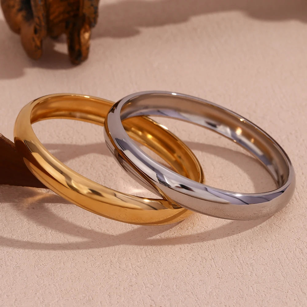 Minimalist yet bold, the Nadia bracelet captivates with its sculptural lines and ultra-shiny mirror effect. Its domed shape adds a couture touch to any outfit. Available in gold or silver, it stands alone or can be worn stacked for a statement look.