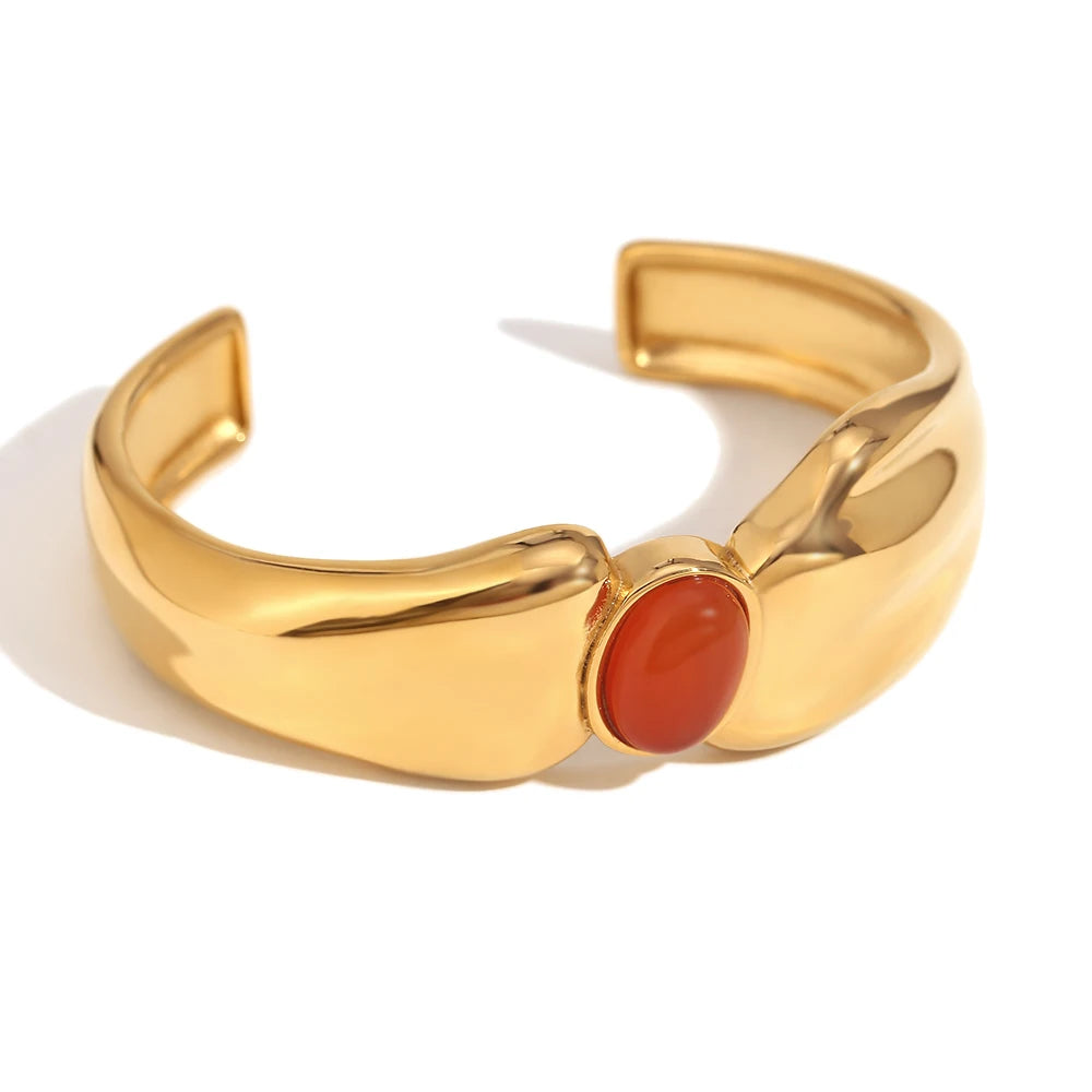 Ideal for enhancing a minimalist outfit, or to mix with other gold bangles for a sophisticated stacking effect.